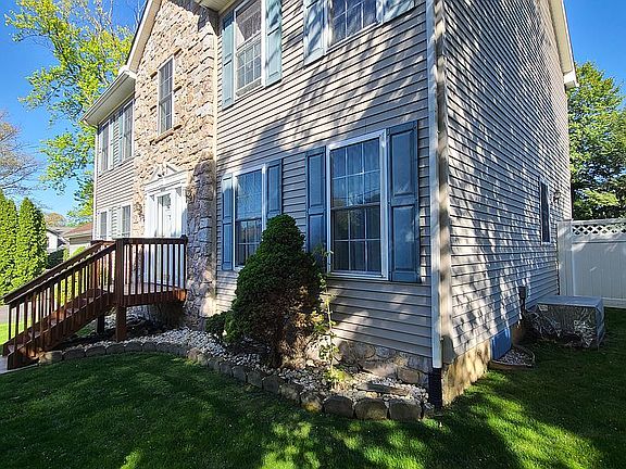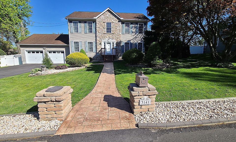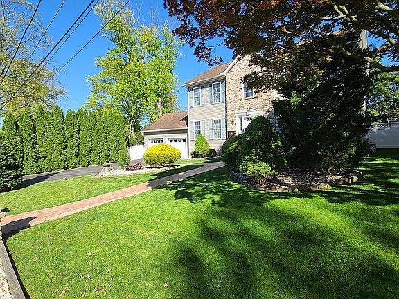 A stunning & stylish single-center hall colonial-style house with 2x6 exterior walls. This loving home boasts majestic matching color stamped concrete walkways and professional landscaping to the front door, a hardwood floored entry foyer, a large formal living room and family room combination, and a large formal dining room that flows into a very large, white eat-in kitchen with a center island, ss/range & exhaust fan, 2x ss/sink, dishwasher, soffit lighting & a separate eating area the exits to the sliding door outside. Take the turned staircase to a sumptuous master bedroom with a 4-piece master bath with a whirlpool tub, double sinks, a big walk-in closet, and a vanity dressing area. You will also find an office that could be a 4th bedroom. There are two other ample-sized bedrooms, a linen closet, and a hall bath. The basement is big, clean, and dry, with 3 basement windows, ample storage and an exit to an oversized two-car garage. The garage is 10 feet tall inside and contains 3 windows and 2 garage doors with windows. From the garage, you step into a picturesque flat backyard sanctuary big enough to play many ball games with your kids. On one side you will find enclosed a big garden and 2 sheds for storing your lawn and garden equipment. On the other side, pavers petition near the house sliding door. The yard is totally private, with a white vinyl fence on each side and very tall arborvitaes at the back. In front of the garage is an extended one-year-old driveway with very tall arborvitaes on the side, big enough to park six cars or more.