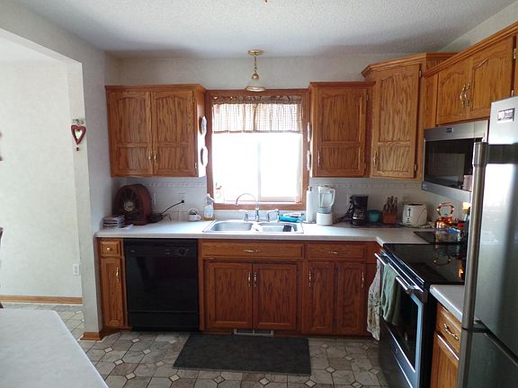 Wonderful southside Rambler in popular Cimarron Addn. Easy access to I-94 for commuters! All living needs on one level. Nice sized owners bedroom with large walk-in closet! Beautiful marble tiled flooring throughout the main floor and breakfast bar! Refrig, stove and micro are NEW stainless steel Maytags! Open floor plan: nice for entertaining. HUGE familyroom downstairs with gas fireplace and additional 2 bedrooms. New furnace 2019. New roof: June 2020. Backyard has great trees and is partially fenced-in! Walk to the neighborhood park! A great place to call HOME!