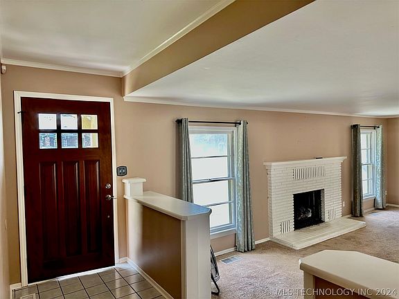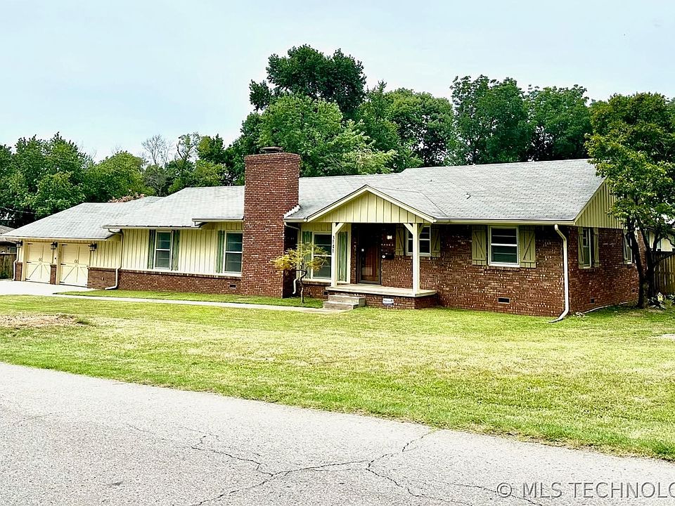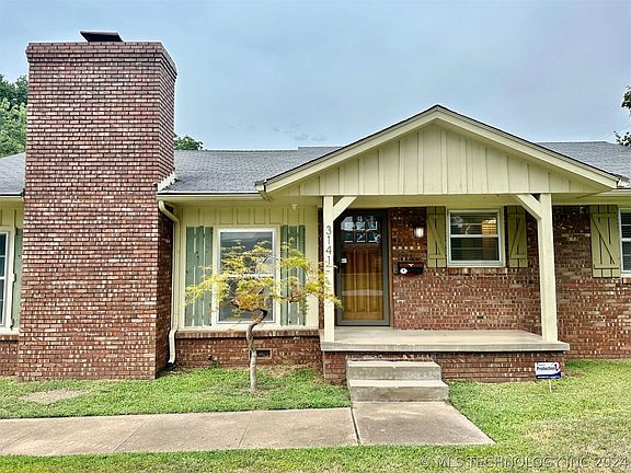 Looking for S P A C E & Great Reno Potential? Tons of both in this Single Story Mid-Century Modern Ranch on a corner lot in Tulsa’s desired Patrick Henry & Edison area. Could be a great home for family w/ tweens to teens or a multi generational household w/ split bedroom plan! This home features a total of 5 bedrooms, 3.5 baths, 2 large living areas. Kitchen is centrally located, perfect for entertaining potential in conjunction w/ backyard 'courtyard’ style possibilities! Two huge living areas, one with a featured fireplace and second lower area perfect for additional entertaining, play room or media with easy access from kitchen to original laundry/utility & storage space also w/ backyard access. From the front entry, on the east side of the home, two separate bedroom wings with dedicated secondary laundry space, totaling 4 bedrooms or or could be perfect work out/ hobby options and or plenty of space for company. First original bedroom wing at front of home, features classic built-ins w/ 2 beds (one with its own private half bath) and its own dedicated full hall bath. Second wing towards the back of the home begins w/ second dedicated laundry space, & 2 huge bedrooms that share a pullman bath featuring a large walk-in shower. Private primary bedroom features vaulted ceiling, separate backyard entry, separate spacious walk-in closets and large private bath w/ huge walk-in shower w/bench, separate large tub, as well as bonus room could be office w/ separate entrance. Easy to picture an amazing backyard for entertaining. Both side yards also provide lots of space and opportunity for projects and toy storage. Tons of space and potential. Deep oversized 2 car garage provides desired work or storage space and closet. Bonus office on the westside with its own outside entry & much desired extra parking, great for small business or teen parking! Make an appt for a personal showing and put your own stamp on this spacious blank canvas with tons potential!