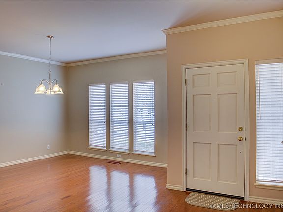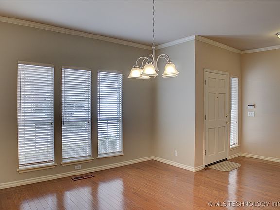 Jenks Schools! Easy living in this low maintenance super clean home. A spacious 2,492 sf, 3 beds, 2.5 baths, side entry 2 car garage. The first floor features a high-ceiling hardwood floored living room with a fireplace, formal dining, a separate office, and a refreshed granite kitchen with an island and walk-in pantry. The first-floor primary bedroom has an ensuite bathroom with double vanities, a shower, a jetted tub, and a large walk-in closet with/ built-ins. Upstairs features two bedrooms, a private bath, and a large landing that could be a study/library nook. Additional attributes of this home: 50-gallon water heater, landscape irrigation, property alarm, low HOA fees, re-circulating hot water, 2019 refresh of kitchen and flooring, lock and leave, Jenks Schools.