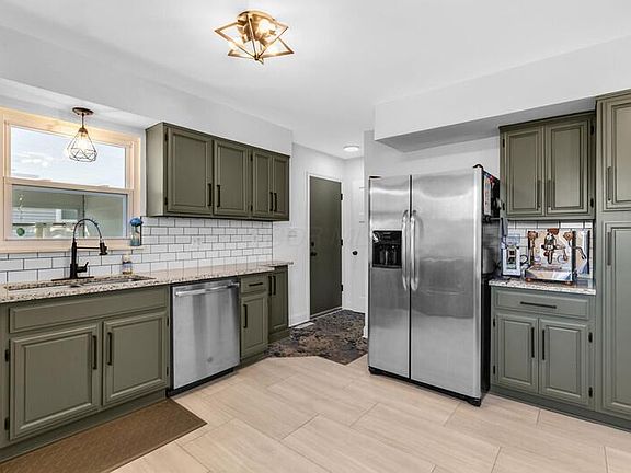 Beautifully updated ranch home with plenty of natural light! The main level features new living room window, original hardwood floors throughout the living room & 3 bedrooms, remodeled full bath with tile shower, and spacious kitchen with granite countertops, tile backsplash, ample cabinets, and stainless steel appliances including a new dishwasher! The eat-in kitchen can easily hold a 6 person table or add an island! The 13' x 14' 3 season room is bathed in sunlight throughout the winter months & is perfect for summer entertaining! The lower level features 400 SF of finished living space & ample storage space too! Upgraded 200 amp electric panel in 2024, plus EV charger in the garage. Newer roof, HVAC & H2O tank! New chimney liner & cap on decorative fireplace. Quiet street!