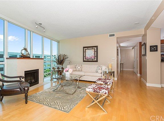 Live the sophisticated lifestyle in one of Irvine's most exclusive high rise residential community of Marque Park Place. This end-unit home has 2 bedrooms + den and 2 bathrooms. The living room has woods floors,tall baseboards,fireplace and floor to ceiling glass with an abundance of natural light and panoramic views. There's a covered patio with space for outdoor dining and city lights views in the evening. The dining area is spacious and has views. The kitchen has granite countertops with stainless steel appliances with a built-in refrigerator and 5 burner gas range. The kitchen is open to the dining room. The master suite has floor to ceiling windows with a large walk-in closet. The master bath has jetted soaking tub and walk-in shower. Travertine throughout with granite counters, The second bedroom is bright with floor to ceiling windows and carpeted with a closet area. Second bathroom has travertine and granite and tub/shower combo. The den is currently used as an office with floor to ceiling walls of glass. The outstanding amenities include 24 hour front desk concierge & guard gated attendant with a grand entrance lobby. There's a pool,spa,fitness center, barbecue area, business center, meeting room and parking garage with elevator access. The building is located 5 mins from John Wayne Airport, Newport Beach and the fabulous shopping at Fashion Island and South Coast Plaza. The shopping center located just steps aways has Houstons, Mother's Market and LA Fitness+more.