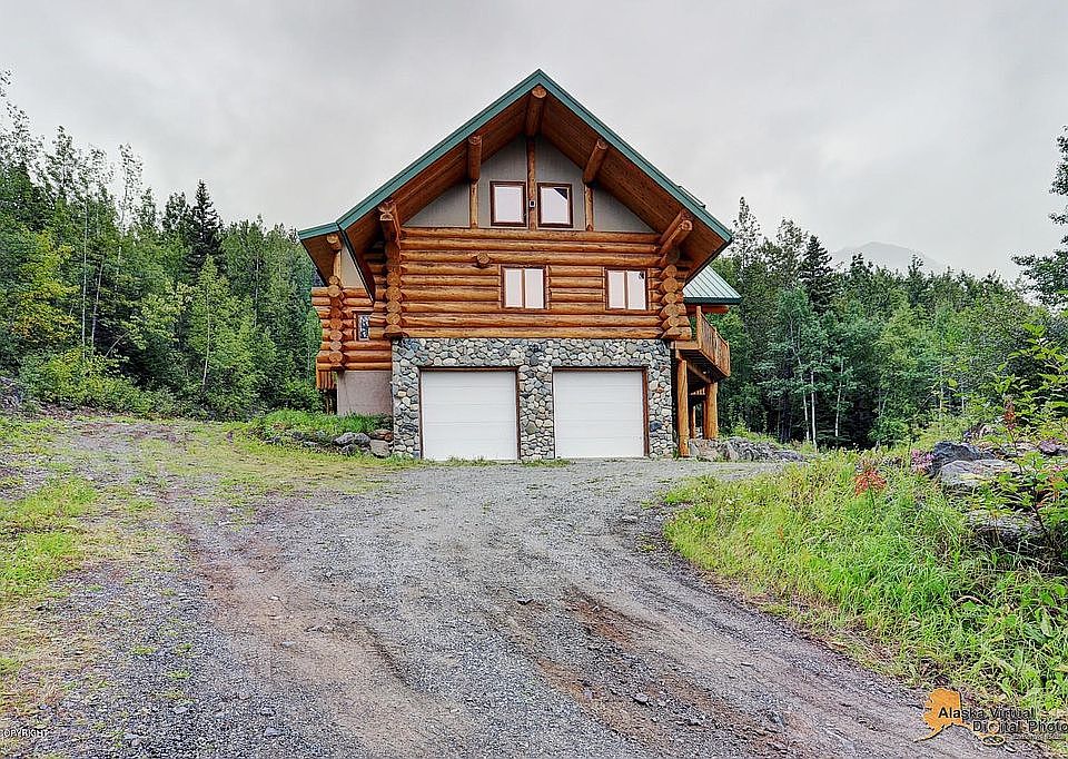 Amazing custom log home with spectacular views of Eagle River Valley. Hands scribed Canadian logs, AK river rock fireplace, sun drenched soaring ceilings, AK birch cabinets in the kitchen, large pantry, in floor radiant heat, enjoy the huge deck with the sounds of the creek flowing by. Large 4 car garage, RV parking & separate cabin that could be fixed up or used as storage. Alaska living at best!