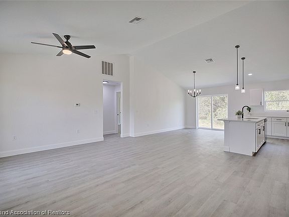Welcome to your dream home in the heart of Avon Park Lakes! This stunning 3-bedroom, 2-bathroom, NEW construction gem is the epitome of modern living and luxury. From the moment you step through the door, you'll be captivated by the thoughtful design and high-end finishes that define this residence. Step onto the gorgeous vinyl plank flooring that not only adds a touch of elegance but is also easy to maintain. The expansive vaulted ceilings create an open and airy atmosphere, making every room feel spacious and inviting. The heart of the home is the kitchen, adorned with quartz countertops that provide a sleek and durable surface for all your culinary desires. The stainless steel appliances and white shaker cabinetry complete the kitchen, offering both style and functionality. The master bedroom is a true retreat with TWO large walk-in closets and an attached private master bathroom featuring a beautifully tiled walk-in shower that adds a touch of luxury to your daily routine and dual vanities. Whether you're entertaining in the open-concept living space or enjoying a quiet evening in the master suite, every corner of this home reflects the attention to detail and quality craftsmanship that went into its construction. Located in the desirable Avon Park Lakes neighborhood, you'll have access to a thriving community with nearby amenities, parks, and schools. Embrace the opportunity to make this brand-new construction your forever home. Schedule a showing today and experience the perfect blend of comfort and sophistication!