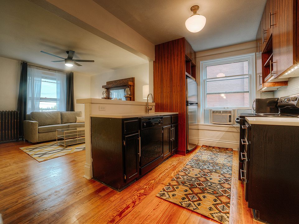 - Eating Space / Kitchen, Open Floor Plan, Updated, Window Coverings, Storm Windows