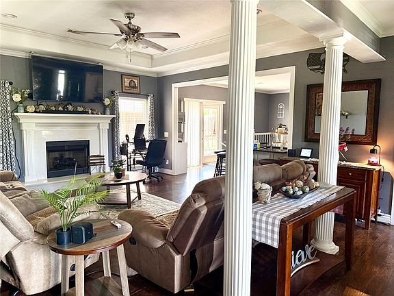 Gas-log fireplacePrivacy fenceBeautiful back deckWalk-in pantryBright cabinetryAttractive backsplash