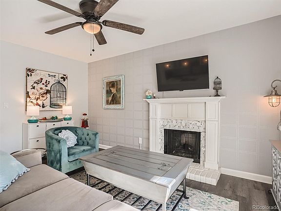 - Description: Opens To Patio And Open To Kitchen And Has Ceiling Fan And Fireplace With Tile Surround