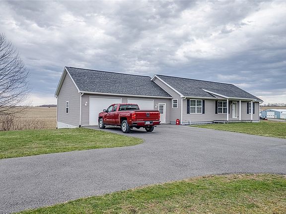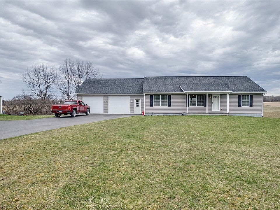 MUST SEE! OPEN HOUSE Saturday April 15th 1-3PM. Charming ranch home located in Stanley, NY! Built in 2014, this 3 bedroom 2 bathroom home has modern plumbing, heating, electric, appliances, and air. The open kitchen-living room floor plan is beautiful and spacious with an adjoining deck that overlooks a large back yard and beautiful countryside. Full basement and 2 car garage makes for a great workshop with endless possibilities. The paved driveaway has plenty of space for additional parking. This home is conveniently located between Geneva and Canandaigua.