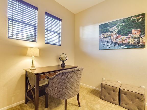 Turnkey condo w/stunning design!! 2 bd plus office 2.5 bath...Main level boasts detailed kitchen w/tile floors,granite countertops,mosaic tile backsplash, custom lighting & paint, built-in media center, all in a sophisticated,neutral decor! First level features office w/attached 2-car garage. Sip your morning coffee from one of the two covered patios that view the surrounding hillsides, lounge at one of the two pool locations offered or hike the peaceful trails of Rancho Carrillo.