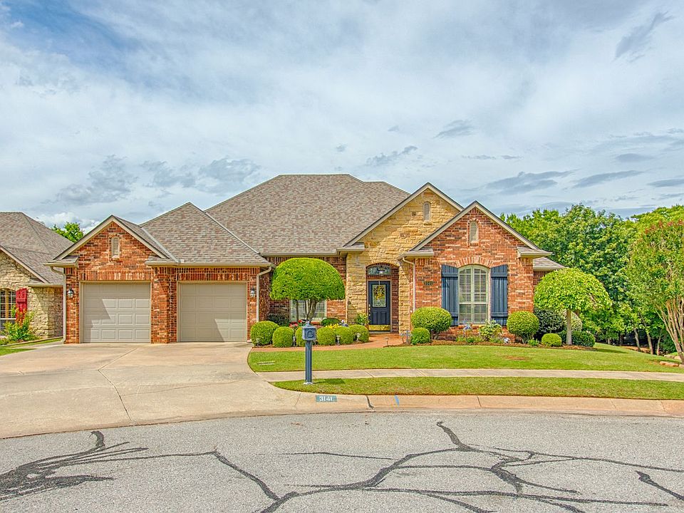 Beautiful and recently updated one story home built by French Construction. The home sits in a quiet cul-de-sac with beautiful landscaping, mature trees and winding creek with a nice view of the pond. 3 bedrooms, 2.5 bath, 2 living, 2 dining with 2558 square feet. This updated home consists of hardwood floors in living, dining, master and kitchen, Newer appliances, large covered patio with a lovely view of lush trees and greenbelt, tandem 3 car garage with painted floor, Large attic and ample storage. Located on one of the best lots in The Villas II at Coffee Creek, the master, living and kitchen have gorgeous views of the private greenbelt. Minutes from Uptown Market, Mitch Park, Post Office, Lowes, shopping and restaurants.