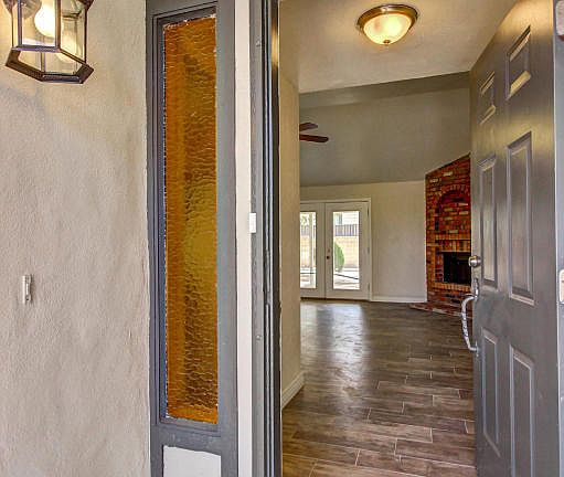 Spectacular 3 bed 2 bath stucco home with new roof! Living room features vaulted ceiling, prominent fireplace & back patio access. All new wood looking ceramic tile flooring and new baseboard throughout. New carpet in all the bedrooms. Kitchen features beautiful refinished cabinets w/ORB hardware, pantry & gorgeous granite slab counter-tops with under-mount sink. Seller will provide new stainless steel appliances including smooth-top electric range, hood & dishwasher with accepted offer. New Brushed Nickel light fixtures, ceiling fans & door hardware throughout. New vanity cabinets & new mirrors in both bathrooms. Brand new dual pane windows! Upgraded 6 panel doors on interior. Large front & back yard with deco rock landscaping and mature shade tree & shrubs. Agent/Owner.