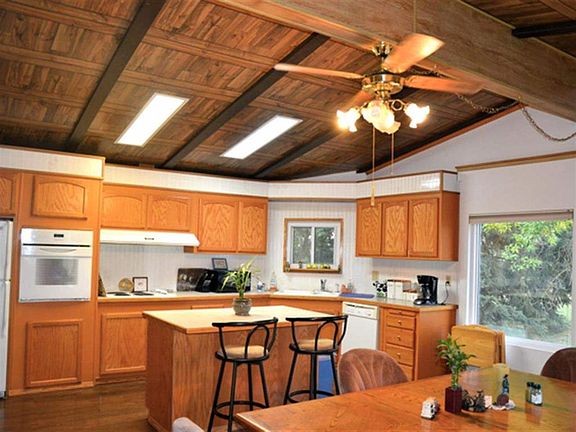 Excellent mini ranch in beautiful setting. Home has good floor plan with island kitchen, family room, jetted tub in master bath, huge mud room/canning kitchen addition. Horse barn with stalls, hay storage & 11x24 attached feed area. Detached dbl shop/garage plus additional outbuildings & chicken coop. Fenced & cross fenced. Good well.