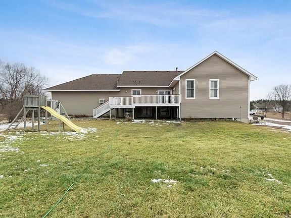 Six bedroom, 3 bath rambler on 2.5 acres. Spacious kitchen with lots of cabinets. Living room with vaulted ceilings and large window to bring in the natural light. Beautiful two tier deck completed in 2020. 40x45 ft pole building has concrete floors, electric has been ran to building and box is in place, but wires have not been pulled yet. New furnace in 2020 & new septic in 2017. Second kitchen in the lower level with separate entrance makes an attractive option for multi generational family or multi family to cohabitate! Or just great space for the "new normal" with people working from home or homeschooling. Great space ready for your updates to make it your own!