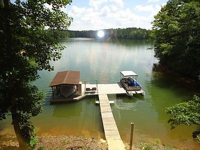 This home is located on Lake Wedowee and was built in 2001. The interior offers nice custom built cabinets, a smooth surface stove top, a walk in pantry, and a dishwasher. The laundry room is off of the kitchen, which is very convenient. There is also a 1/2 bath located between the living room and the kitchen. The kitchen, living area, and dining area all have wood flooring. The living room has vaulted ceilings, which are tongue and groove pine, the windows are commercial grade mirrored tempered glass, and there's recessed lighting. The master bedroom has access to the covered deck and a walk in closet. The master bathroom offers tile floor and a walk in tile shower. There is one bathroom upstairs with two bedrooms and a sleeping loft, which has a great view of the lake. A large recreation room is located in the finished basement, along with a bathroom and 2 bedrooms. There are no steps to the dock, which has a covered boat slip, a sun deck, and is floating on year around water.