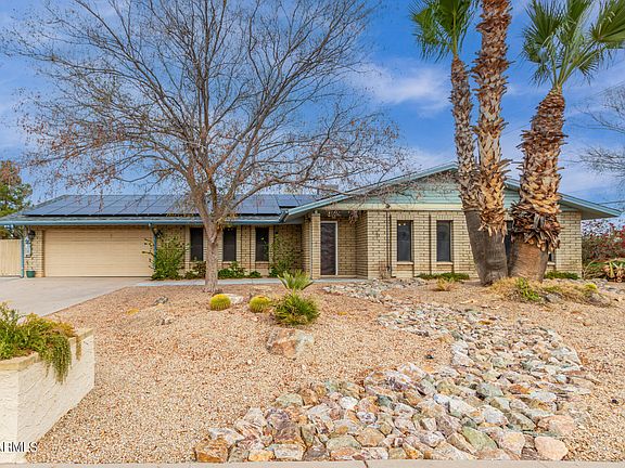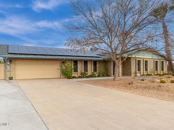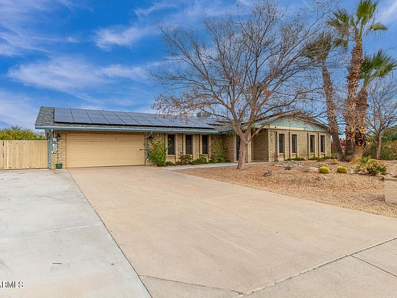 Looking for an upgraded move in ready home on HUGE lot easy access to the 101 and just 10 minutes from Scottsdale quarter? Discover this charming 4-bed, 2-bath corner lot residence featuring OWNED solar panels for FREE POWER, a 2-car garage, an extended driveway, and an RV gate. The great room showcases recessed lighting, a soothing palette, wood-look flooring, and a cozy fireplace. The kitchen is equipped with a quaint breakfast nook, wood shaker cabinets with crown moulding, sleek granite counters, and SS appliances. The main bedroom offers a walk-in closet and a private bathroom for added comfort. Venture outside to the vast backyard, displaying a covered patio for al fresco dining, a relaxing spa, and a refreshing pool. Don't miss out on this incredible find!