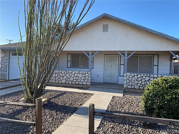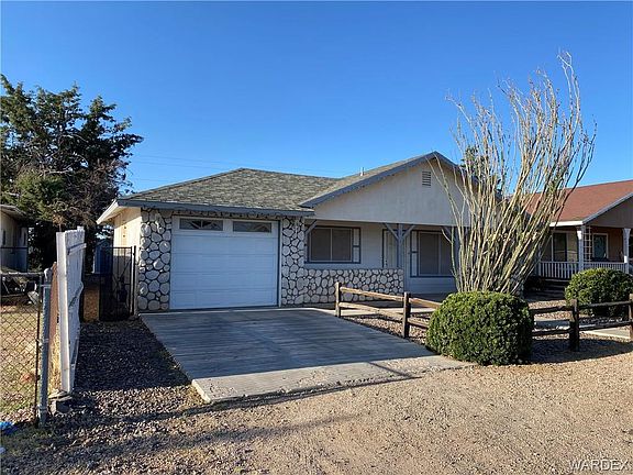 Adorable single family 2 bedroom & 2 bath home with covered porch for your shade. Each bedroom has it's own entrance/use to a bathroom. Attached 1 car garage. Home has cute curb appeal and is move in ready! Large kitchen with white cabinets, cathedral ceilings, pot shelves. Fenced in back yard with utility/tool shed. This home is priced great and awaits you! Come tour this today! Kingman is less than 1 hour to BullHead City, Laughlin and the Colorado River!!