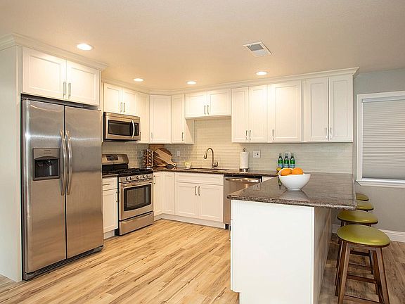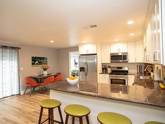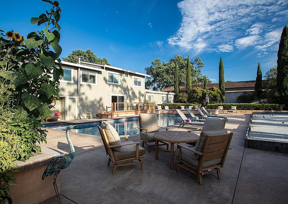 Resort living in this 3+ acre multi-family compound. This home was completely remodeled throughout, all new kitchen, bathrooms, dual pane windows and floors. 3 bed 2 bath house with an office that could be used as a fourth bedroom. This luxury home, also includes; a big living room, lg kitchen with granite counter top, newer stainless steel appliances, vinyl plank flooring, dining area, Black out blinds. Master bedroom has large sitting area with view of pool and yard. All the bedrooms are large with the upper 2 having walking closets and lower bedroom with mirrored closet doors. Sliding glass doors open up to large deck/pool area with waterfalls, fire features, and outdoor kitchen. All Utilities Paid. Pool, patio, yard and lots of parking 3+ car parking uncovered. The great house is close to shopping, schools, parkes and walking/biking trails. Call for an appointment. Unfurnished rental, all utilities paid, pool unfenced, 6 month minimum.