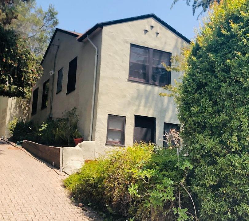 This unique home has 2 bd/1 bath in the front & an intimate self-contained master suite. Built around a central courtyard with deck, this outdoor space feel like a zen garden. 2bds, living, dining room & kitchen all with refinished floors. Fireplace & org.built-ins, also in dining rm add a warm and relaxed feel. Through a sheltered breezeway is the entrance to a MB retreat with vaulted ceilings, recessed lighting, walk-in closet, & spa-like master bath. From the courtyard & master you can access the rear yards that are truly amazing. The stairway leads to your backyard oasis. This almost 1/4acre lot offers gardens, fruit trees, & raised toffs for your organic vegetables A terraced setting up top makes for another tranquil and private retreat. Solar energy system, on-demand water heater , paver driveway w/ electric car charger. This home is convenient to parks, schools & shopping but makes you feel like your a million miles away.