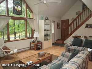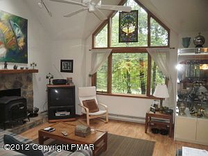 Lakeview - Private setting across the street from lake and backs up to greenbelt. 2700+sqft on 3 levels. Open floor plan on main level overlooking lake in front & screened porch and deck in rear. LR with Cathedral ceilings & stone fp w/ gas insert. 4BR, 2BA, plus large loft. Master BR with walk-in closet and master bath w/ shower plus 2 person jetted tub. on 1+ acre wooded lot.