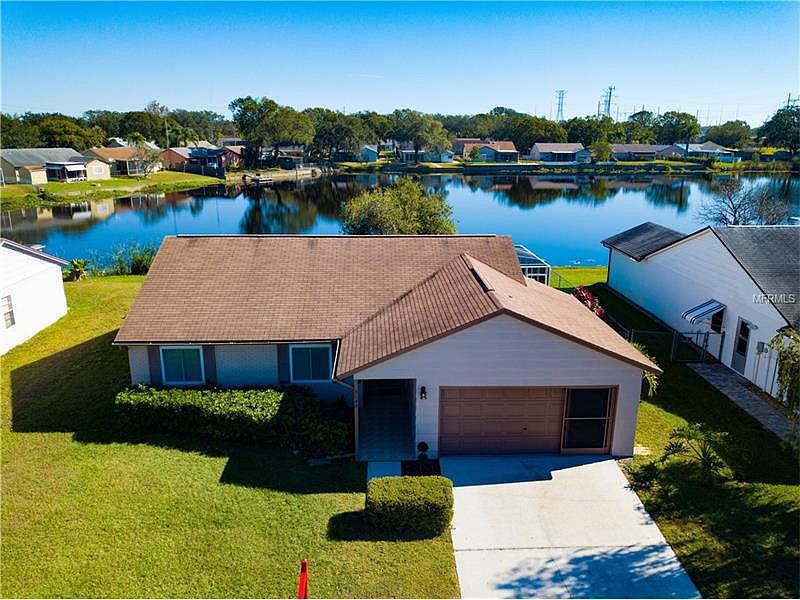 2 BEDROOM, 2 BATH, 2 CAR GARAGE REMODELED HOME FEATURES: NEW KITCHEN CABINETS, NEW GRANITE COUNTERTOPS & BREAKFAST BAR, NEW LED LIGHTING, NEW STAINLESS STEEL KITCHEN APPLIANCES, NEW MASTER BATH CABINET, GRANITE COUNTERTOP, SINK, FAUCET, & LIGHTING, NEW GUEST BATH CABINET, COUNTERTOP, SINK, FAUCET & LIGHTING. NEW LAMINATE FLOORS IN LIVING ROOM, MASTER BEDROOM & BEDROOM 2; CERAMIC TILE IN ALL OTHER FLOOR AREAS. NEW SWING DOORS & HARDWARE, NEW CEILING FANS, NEW BLINDS & CLOSET SHELVING. NEW INTERIOR & EXTERIOR PAINT, NEW FIBERGLAS FINISH ON POOL WITH 20 YR. WARRANTY. 26 X 18 X 7 X 9 SCREENED POOL ENCLOSURE, 20 X 10 SCREENED LANAI WITH VINYL PANELS, 14 X 8 PATIO SLAB. SITUATED ON A BEAUTIFUL LAKE WITH VIEWS FROM SEVERAL ROOMS. NEWER ROOF, NEWER A/C, NEWER WINDOWS. FHA-VA-OK.