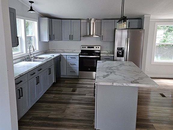 Car enthusiasts, hobbyists, or anyone needing extra storage will love the rare four-car garage/workshop. Step inside to a spacious, light-filled living area and an open-concept kitchen featuring sleek stainless steel appliances, brand-new cabinetry, and a large island perfect for gatherings. Recent upgrades include a hot water heater, modern lighting, and spa-inspired bathrooms- all completed with in the last year.