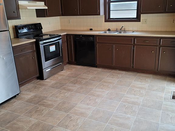 main level has 2 bedrooms 1bath living room kitchen with eating space dishwasherfridge stove. basement has family room with fireplace 1 bedroom 1 bath storage room with washer and dryer hookups. 2 car garage and fenced back yard.
