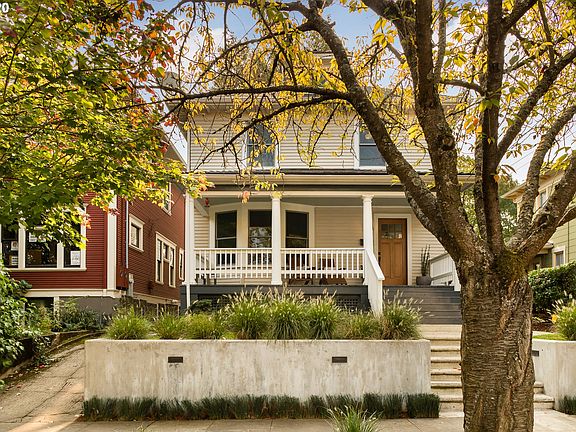 Dramatic modern addition fuses old & new in this unique 4 bed/3.5 bath Foursquare. Formal dining room w/original woodwork & pocket doors leads to an airy kitchen & gorgeous open living/entertaining space designed by a former Herzog & de Meuron partner. Roomy master features his & hers walk-in closet & ensuite bath w/Carrara marble tile work. Finished basement w/bed & bath. Covered porch & private backyard made for summer BBQs. Newer systems, great neighbors/street/block parties, walk score 96. [Home Energy Score = 3. HES Report at https://rpt.greenbuildingregistry.com/hes/OR10187230]