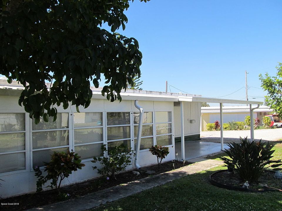 Are you wanting to get out of the snow & winter in sunny Florida or just have easy care living year round? Welcome to Palm Bay Estates where for $167 a month you receive lawn care, irrigation, basic cable & wi-fi, clubhouse with activities, heated pool, friends & community boat ramp leading to Indian River & 12 miles out to ocean. This home was built in 1973 with 2 bedrooms & 1 1/2 baths. Has a nice enclosed porch with laundry & handy carport with extra parking available. Plumbing underneath changed to copper over the years. Partially furnished. Clam shell shutters on windows. Ceiling fans. Fridge less than 2 years old. Needs some updating. HOA just built a dog bark zone. You can store your boat for $22 a month or RV for $35 a month on site.