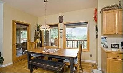 Hardwood floors in kitchen refinished November 2010, open floor plan, south facing lot, end of cul-de-sac, great views, covered deck & lots of deck with hot tub, walking distance to shops, 2nd master/mother-in-law, gas grill, invisible fence, spacious kitchen. Close to all amenities that North Evergreen, CO has to offer. Jefferson County.