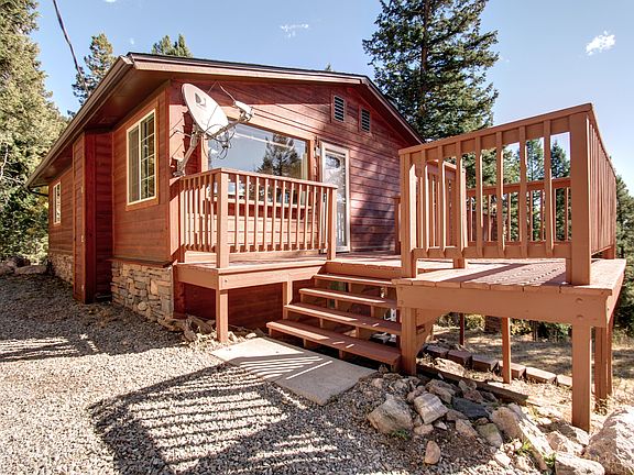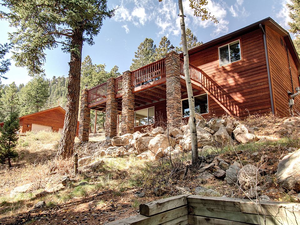Beautiful mountain home with easy access to Hwy 285. Recently updated throughout, with whole-house humidifier and 2-year old roof. Move-in ready with a bright, open floor plan, hardwood floors and gorgeous stone fireplace with log mantle. Kitchen includes granite counter tops, stainless steel appliances and gorgeous wood cabinets. Two bedrooms & full bath complete the upper level. Hardwood staircase with wrought-iron spindles leads you to the lower level. This could be an additional family room, your office, or even a great exercise room. The flex space offers even more options. Your master suite includes a large walk-in closet, and gorgeous en-suite bath featuring dual sink vanity, jetted tub and custom tile work. Wonderful wrap-around deck with great views, and seasonal creek. Huge 4-car garage has tons of room for your vehicles, tools and toys, high ceilings and service doors for convenience. Sunny driveway to help minimize plowing; community water & sewer. This one will not last!