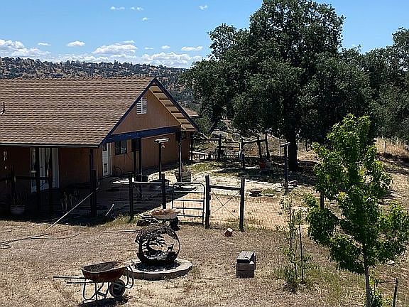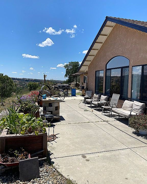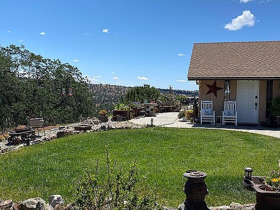 Beautiful single level 2 bedroom 1 3/4 bath with garage on 6+ acres. Huge master suite with large master closet. Two covered patios with gorgeous views from almost any location on the property. Additional storage unit and covered carport. Large water storage tank and property is fenced.