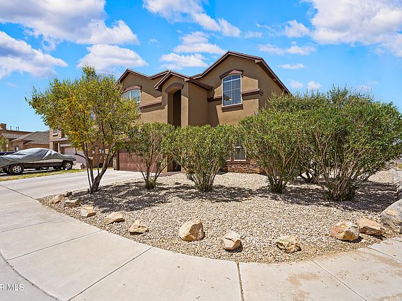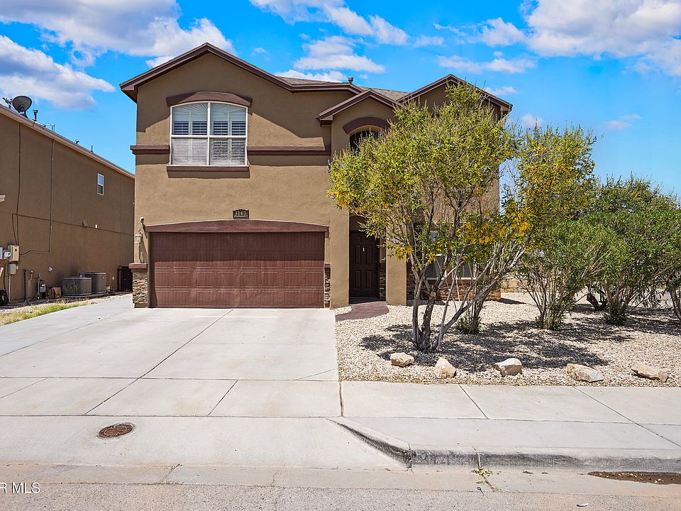 Welcome to 3143 Hidden Creek Drive a spacious, two-story single-family home on a corner lot in the Ventanas subdivision. Built in 2013, this residence offers approximately 2,287 sq ft of living space with 4 bedrooms (or 3 plus a versatile game room), 2.5 baths, and an airy floor plan. The warm living area centers around an electric fireplace, while the kitchen boasts granite countertops, a breakfast bar, and included appliances. Unwind in the generous master suite featuring a walk-in closet, double vanity, separate shower, and tub. Enjoy indoor convenience with a separate laundry room. Step outside to a nicely landscaped yard with a covered patio ideal for gatherings or relaxing evenings. Additional perks include a 2-car garage, stucco exterior, forced-air central heating, and refrigerated cooling. Nestled close to schools, shopping, Loop 375, and just minutes from Fort Bliss, this home blends comfort, style, and location perfectly.