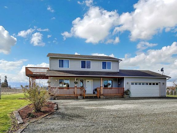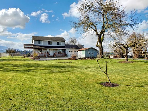 Stunning views of the sisters mountain range from many places in this home await you on this 1 acre paradise. Country living without the huge maintenance can be yours. Large fenced backyard with garden space and hot tub off the deck and still set far enough of the road for privacy, with a central forced air heat pump to efficiently keep you warm in winter and cool in summer. new carpet and flooring in kitchen, great floor plan welcomes you home. Choice of schools districts Nooksack or Mt Baker.