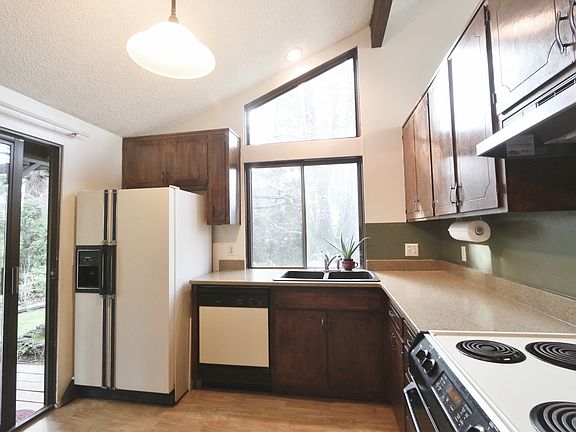 NW Contemporary in Very Nice Neighborhood! Picture Window View of Mountains and Trees from Living Room! Vaulted Ceilings, Beams, Fireplace, Quarts and Granite Counters! Lower level is Flexible Space, Used as Master Bedroom (4th)or Family Room, Has Closet, Brick Fireplace, Built-in Desk, Shower/Bathroom and Laundry! All Kitchen Appliances and Washer/Dryer Inc! Brand New Deck and Pergola! New Roof 2016! Nicely Landscaped, Sprinklers Front and Back!