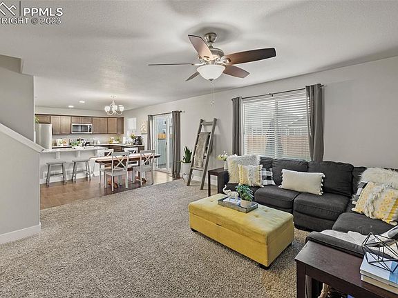 This newly built 2-story home offers a modern design with an open floor plan! The main living-level features a spacious living room, a dining area, and a modern kitchen with ample granite counter space and stainless steel appliances. Upstairs, you'll find three bedrooms, two full bathrooms, and stunning mountain views. The owner's suite has an ensuite 5-piece bath with walk-in closet. The unfinished basement provides the opportunity to customize the space according to your preferences. Outside, the backyard is fenced for privacy, creating a quiet space for outdoor activities and relaxation. This home is located minutes from military installations, and is location on the Marksheffel corridor, which provides quick access to the south and north side of Colorado Springs. Don't miss out on this home!