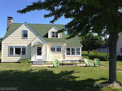 This is it! The classic, solid, well-taken-care-of, up-north lakefront cottage located in a quiet, serene location that you've been waiting for. And it's right on PORTAGE LAKE, which channels out to LAKE MICHIGAN. The 4-bedroom, 1 1/2-bath main cottage is fully furnished (including grille, tools and bikes) and ready for you and your watercrafts. Great sandy beach, wonderful large grassy lawn, long dock and a fire pit. Inside, there's a wood-burning fireplace, so you can enjoy this location year-round. You'll love the 3-season room and the cozy feel throughout. Plus there's an additional Cottage inc~ A 1-bdrm/1-bath guest cottage ... and 1-car garage! All the appliances (stove, refrigerator, microwave, washer/dryer) are included too. You and your family and friends will enjoy yourselves this summer and years to come. Sleeps 13 total!! (Previous owners owned the cottages for over 60 years. Cottage is rented throughout the summer so showings will need to be on Saturdays fro Brokered And Advertised By: CENTURY 21 Boardwalk Listing Agent: Suzanne Riley