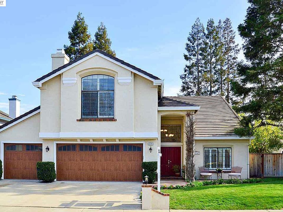 Lovely Amador II model with vaulted ceilings, hardwood flrs w tile inlay & sweeping staircase. Full bed/bath downstairs, granite kitchen w stainless appliances, updated garanite baths, 3 frplces, great bonus rm/study. Solar heated pebbletec pool & spa. Walk to Tennis park, shopping & Peets coffee