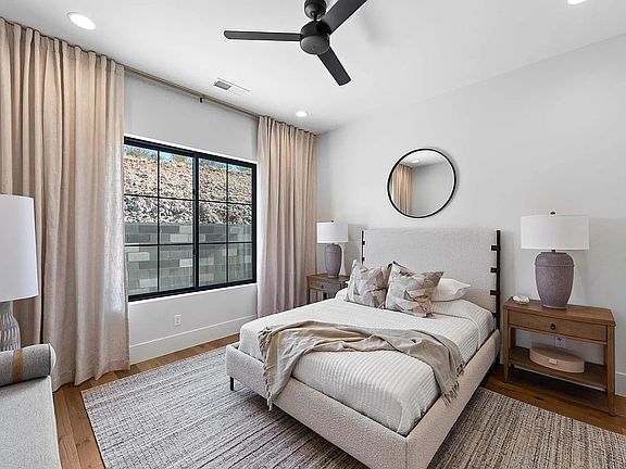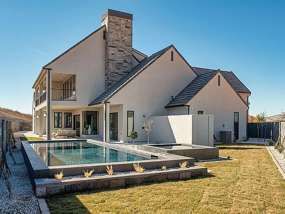 Modern European home with 16 foot ceilings. Large open kitchen with large butler pantry , family room, dining room and breakfast nook surrounded by tall windows to capture all the views! 4 bedrooms, 3 full bathrooms and 2 half baths, large theater room with surround sound theater system and wet bar, laundry room upstairs & downstairs and private laundry in the master bedroom. Fully landscaped private back yard has elegant pool and spa with an outdoor shower. ** Home is fully furnished ** This home is just minutes away from the Copper Rock Golf Course in Hurricane Utah, 25 minutes to Zion National Park, 15 minutes to Sand Hollow Resort