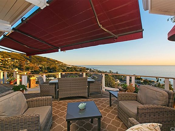 Amazing value, Capture white water and panoramic views from this lovely three-level home in the hills of Laguna Beach. Residents of Coast Royale enjoy living within minutes of pristine beaches, world-class dining, and the renowned Montage Resort and Spa, and with only a 10 min walk to some of South Laguna's best beaches and coves, and entrance to canyon hiking and biking trails just doors away! Stunning sunset views over Catalina Island as well as sunrise view from the master bedroom. Views of San Clemente Island, the sailboats out of Dana Point, and as far as Huntington Beach to the north! Take the free trolley into downtown Laguna to shop, visit the local art galleries, have a bite to eat, or visit the well-known Sawdust Festival or the Art-a-Fair. Outdoor amenities include a fire pit with panoramic view, a cozy, separate courtyard area with waterfall and koi pond, plus two built-in barbeques. Large decks span each floor, all with unparalleled views. This is the perfect entertaining house which includes a large bonus room on the lower level great for your theater room, pool table, or private space with bedroom and bath on same level. Mature trees add to privacy from neighbors with street to street 7,442 lot The home boasts plenty of parking with garages for 6 cars plus additional parking on the driveways. The two-car attached garage conveniently enters to the kitchen with street level entrance. On street below, a four-car garage is perfect for car enthusiasts!