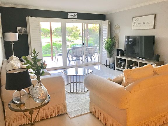 Panoramic view of prestigious El Niguel Golf Course (7th Green) and minutes away from the Ocean. Sprawling 3 bedroom/2 bath unit with spacious brick patio on ground level. Modern kitchen with granite countertops and upgraded cabinetry, spacious pantry, and stainless steel appliances. Move-in ready with crown molding and refinished laminate floors. Plantation shutters add to the charm with new dual-paned vinyl windows/sliders throughout. Detached two car garage close by with extra storage space. Full size laundry area off of patio. Master bathroom recently remodeled, ceiling fans installed in living room and master bedroom, and brand new air conditioning and heating units. Master bathroom just remodeled with designer upgrades. New paint throughout as well as exterior illumination on the patio. Enjoy this resort setting.