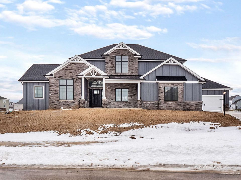 **Open House - Sunday April 14, 1-3 pm **, Immaculate, brand new, 2018 built home by Imperial Homes in Grey Oaks. Custom made home built to last! A grant foyer that opens into a the great room with picture windows offering great views of the pond, a stunning floor to ceiling stone fireplace ,bookcases on either side and 2 story ceiling, living room opens into the gourmet kitchen with custom made self-close cabinets & drawers, Frigidaire gallery series appliances (built in double oven, microwave and gas range. Large walk in pantry, pull-out built-in double step stools, huge island for entertaining, double doors open to a covered Trex deck that overlooks the pond. Master en suite on the main floor. Extensive views of the pond from the living room, deck, kitchen and bedrooms. Master suite is the ultimate retreat with a large bedroom, 2 walk in closets, large tiled double shower, spa-like bathtub, 2 vanities.Upstairs has 4 bedrooms, one with en suite and Jack and Jill bath for bedrooms 2 and 3 (with separate, private vanities). A laundry room with fitted cabinets on the main floor. The house sits on a full, finished expansive basement with huge windows overlooking the pond, Basement has a wet bar with custom cabinets and granite countertops, a huge family room perfect for entertaining , 2 bedrooms, full bath, extra large room that can be a used as a game room/ theatre/ exercise room, storage.This has 2 water heaters and is pre-wired for an alarm system. SW schools.
