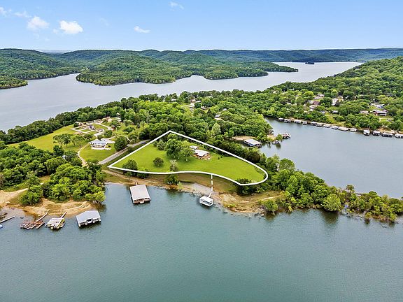 A rare beauty. Divine. Meticulous. This incredible home is nestled on a private peninsula offers, the view, frontage, craftsmanship, & the lifestyle you've worked so hard to achieve. This impeccable mid century modern treasure boasting increasingly rare mowed to the waters edge frontage w/private dock is graciously perched to optimize privacy & exclusivity. Absorbed by a feeling of a private nature preserve, follow the paved, honeysuckle lined drive to your secluded oasis. Upon entering the home you are welcomed by a grand foyer w/iconic beamed ceilings & instantly submerged in 180 degrees of breathtaking water views. As you navigate through this custom home discover meticulous attention to detail w/a lavish & luxurious high level of functionality, practicality & versatility including a chef's kitchen complete w/propane Wolf stove/indoor grill, Subzero refrigerator, expert storage within custom Alder hardwood cabinets & timeless granite surfaces. Follow past floor to ceiling stone-gas fireplace to spa like retreat in expansive owner's ensuite to include more sunrise/sunset lake views, XL soaking tub, dual sinks & dressing table, luxury walk-in shower, convenient laundry, & exceptionally designed walk-in closet. Back across main living also rests guest half bath & intimate guest bedroom. Additional features: detached three car garage/workshop, RV parking, low maintenance commercial TPO (thermoplastic polyolefin) membrane roofing, home security system & peace of mind. No fences to hold you in here, just your natural & beautifully fragrant honeysuckle hedges that buffer your 4 acres from the lakes edge. Ready to hit the water? Stroll right off your back deck to your own private dock (add $)to begin or end each glorious day. The location! By water just min. to Cape Fair Marina, multiple boat up restaurants, the swings, & endless adventure on Table Rock. By land less than 20 to all your daily needs in Branson West. New cherished memories await @ 3144 Buttermilk Springs