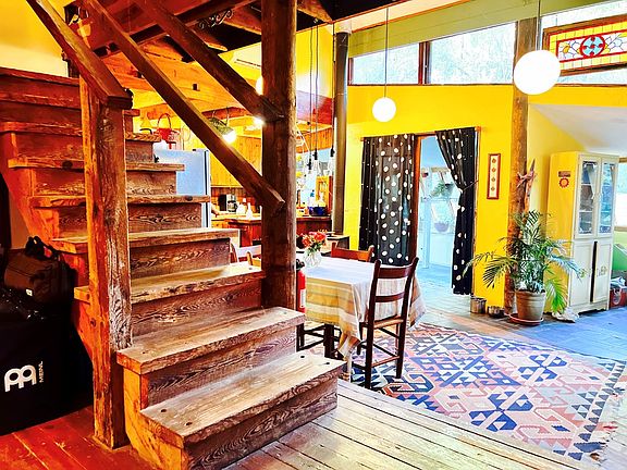 Custom built 2 story, 3 bedroom home is tucked away on 13 wooded acres surrounded by a 300 acre farm and bordered by a year-round creek. This home has too much character and detail to list it all here. Described as rustic-contempary, and a poised atop the hill in a garden setting, sits this handcrafted and nature-inspired gem with strong architectural lines and window filled facade - let the sun shine in! The interior features brick and slate flooring, counter tops with marble and maple cutting board. Living room floors are done in recycled pine from the early 1900's. Down stairs bath has soapstone floor, marble tub and sink with cedar wall boards. Upstairs with natural lighting, heart pine floors, redwood-trimmed doorways. Three heat sources and a/c provided by new mini-split units. Take your friends and guests to see the 280 sqft cabin. Tell them about the 1800's era wavy glass windows from the historic Albermarle Courthouse. Let them know electricity and plumbing are ready to be connected. Take one of the trails to the creek and talk while walking along the tall oaks, maples and poplars. Your new home is the conversation piece -or, keep it all to yourself.