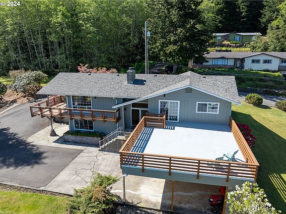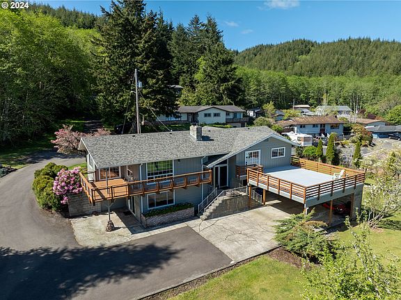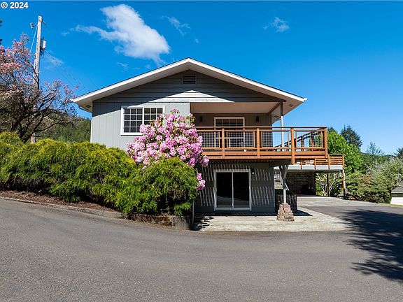 Beautifully remodeled 3500 sq ft home on two lots totaling 1.07 acre inside city limits!!The list of improvements is long! New roof, gutters, decking, flooring, bathrooms, kitchen counters, appliances, interior and exterior paint and more. Two separate living rooms with fireplaces. Large kitchen with ample counter space, double ovens and open to the living room. Expansive decking to enjoy the peaceful views of your own mini orchard, yard and surrounding mountains, Plenty of room to build a shop, guest house or create more parking. Washer/dryer hookups on both levels. Close to hospital, schools, pool and parks. Just minutes away from the Umpqua River, Pacific Beaches, Winchester Bay and the tallest sand dunes on the Oregon Coast. This house is a must see! Owner terms available.