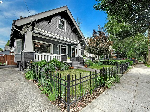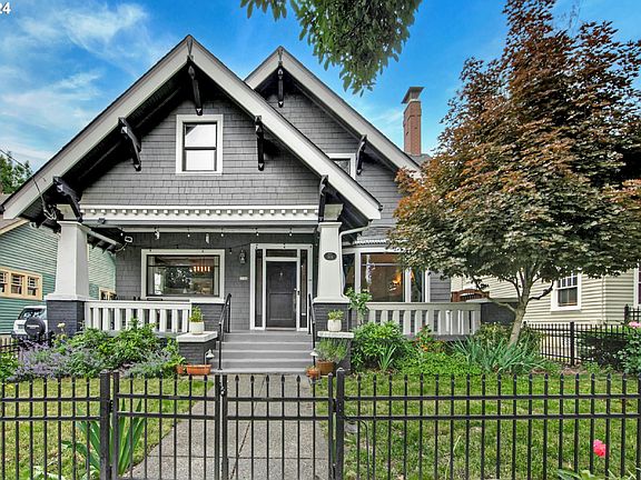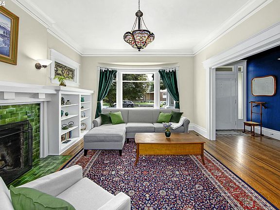 Step into a world of unparalleled elegance with this exceptional Irvington craftsman residence, blending classic charm with contemporary flair. The living room features a stunning beveled bay window and stained-glass accents above built-in book shelving, flanking a vibrant green fireplace that adds whimsical warmth to the space. Enjoy the formal dining room adorned with coffered ceiling, perfect for intimate dinners and grand celebrations. The modern kitchen, equipped with sleek floating shelving, is a culinary enthusiast's dream. The main level boasts three bedrooms, a full bath and the primary has dual closets. The expansive great room on the upper level is an entertainment haven, featuring a charming bedroom, Juliette balcony, stylish full bathroom, and a chic bar, providing an ideal space for relaxation. The fully finished basement offers additional living space with a family room, one-bedroom, full bath, storage, and laundry room. Step outside from the mudroom to a low-maintenance paved backyard with a firepit and bench, shaded by beautiful trees, perfect for outdoor entertaining and relaxation. This home combines classic charm with modern amenities, offering a unique opportunity for luxury living in the heart of Portland. Don't miss your chance to own this masterpiece. [Home Energy Score = 1. HES Report at https://rpt.greenbuildingregistry.com/hes/OR10091974]
