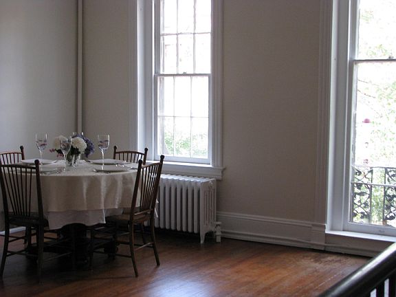 Private entrance with steps to the entire second floor apartment. Large windows, high ceilings and hardwood floors throughout. Tree lined views. Living room with fireplace. Two good sized bedrooms with deep closets.