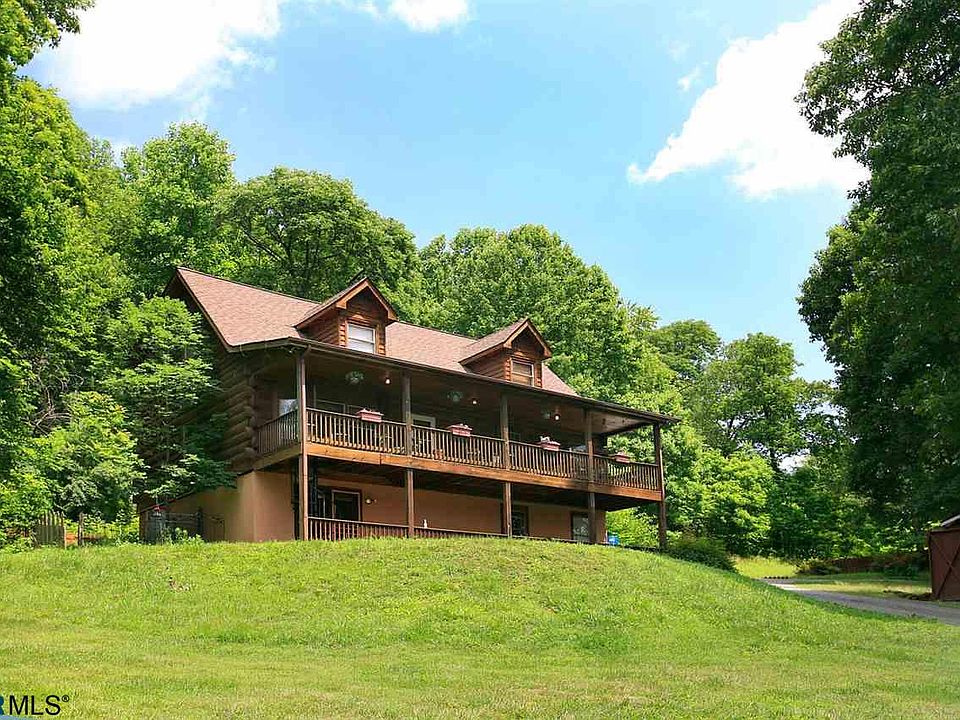 Beautiful LOG home nestled in the Ragged Mountain area on 2 private acres. Extremely large bedrooms. This home has lovely mountain views, an in-ground pool with pool house, The work shop is equipped with electric (240) . The terrace level has a full kitchen and possible bedroom that would make a great mother-daughter or teen suite.