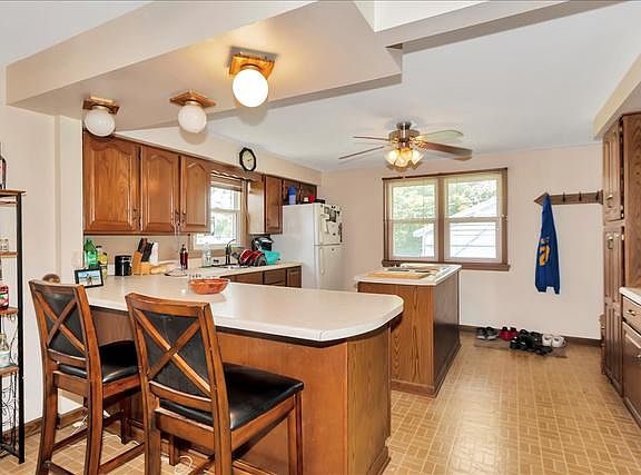 Brick ranch home with full basement close to Kankakee River! Open floor plan with nice layout and original hardwood flooring-Sun room off of the dining room-Kitchen features an island plus large breakfast bar, ample counter and cabinet space-Large fenced backyard with deck and shed-Attached garage with pull down attic-Basement has a bar and large family room needs some TLC-Nice curb appeal and large driveway-One year HSA home warranty included-Call today!
