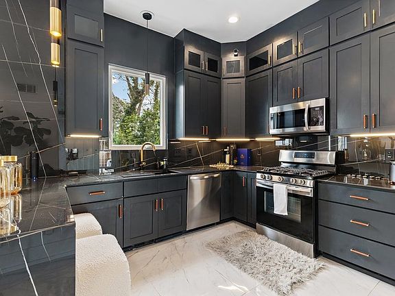 Blacked out.. Electrifying, and Modern Comtemporary Style Home with a Rooftop Patio! The first floor greets you with imported italian tile floors throughout, beautifully accented walls.. and custom light fixtures. The kitchen features black granite countertops, and backsplash, with black cabinets and custom leather handles. The first floor bathroom has stand up tile shower, and zero depth vanity sink- The master bedroom upstairs has a true open floor plan separating the room from bathroom with just a sleek glass wall. Rainfall Shower and a standing tub, surrounded by black tile all over! Custom shelving for the closet space! Direct access to the patio through the second floor, which is decorated with black tile accents and turf! Welcome to the newest blacked out house in durham!