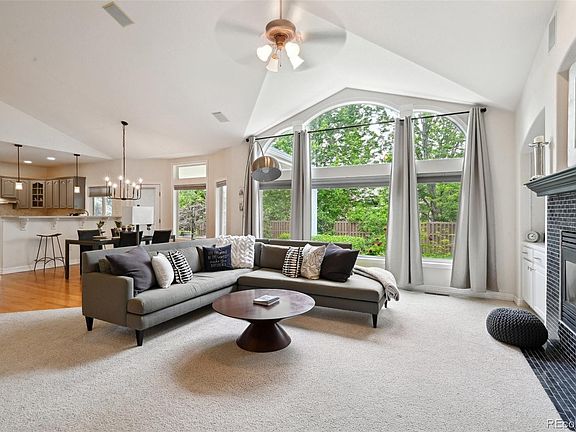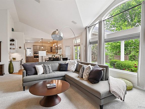 Discover the perfect blend of comfort and location in one of Erie’s most desirable neighborhoods. This beautifully maintained ranch home is tucked into a quiet, tree-lined pocket of Arapahoe Ridge—an established neighborhood near the Erie/Lafayette border known for its mature landscaping and access to community amenities like a pool, tennis courts, and a network of trails, including a scenic loop around Erie Lake. Set on a generous lot, this home offers effortless main-floor living with soaring vaulted ceilings, oversized windows, and thoughtful spaces throughout. The bright, open living room with built-ins and a gas fireplace flows into a modern kitchen with stainless steel appliances, an eat-at bar, and a functional dining area. A cozy lounge—an unexpected bonus—adds comfort and flexibility to the main floor plan where you can have a designated space to watch a movie or the game. Three spacious bedrooms include a private primary suite featuring vaulted ceilings, a 5-piece bath & two walk-in closets. Down the hall you will find two additional bedrooms and a Jack-and-Jill full bathroom. A dedicated main-floor office makes remote work easy & private. The expansive unfinished basement offers endless potential, featuring high ceilings, egress windows, and a bathroom rough-in—ready to finish to your liking. Additional features include a radon mitigation system, a new water heater, whole house fan, and a high-impact resistant roof installed in 2020. Outside, enjoy a beautifully landscaped backyard with a large covered patio—perfect for relaxing in every season. The oversized 3-car garage provides ample space for vehicles, gear & storage. If you've been waiting for the right home in this special neighborhood, this is your chance. Come experience the privacy, charm, and community that make this part of Arapahoe Ridge truly exceptional.